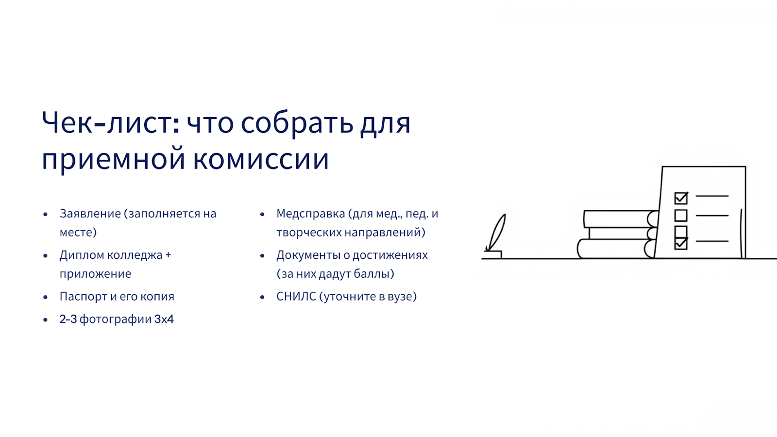 Важный совет: всегда уточняйте точный перечень документов и даты проведения внутренних экзаменов на официальном сайте выбранного вами университета. Правила могут незначительно, но отличаться.