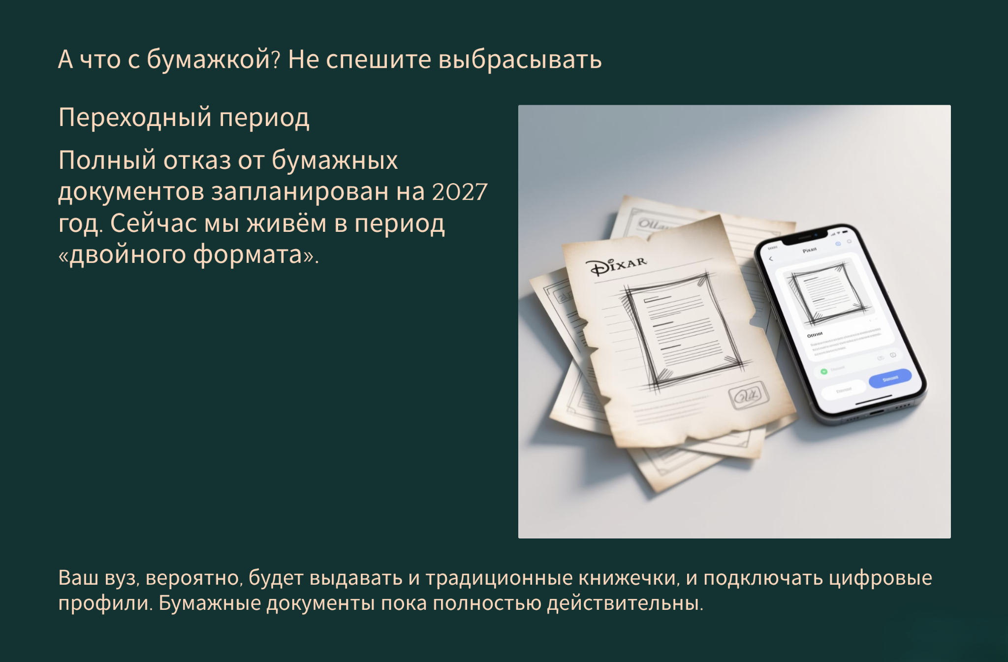 Бумажные студенческие и зачетки пока сохранят свою силу. Однако после 2027 года они будут постепенно выводиться из оборота. Важно понимать, что это централизованная государственная инициатива, поэтому со временем все без исключения учебные заведения перейдут на новый формат.
