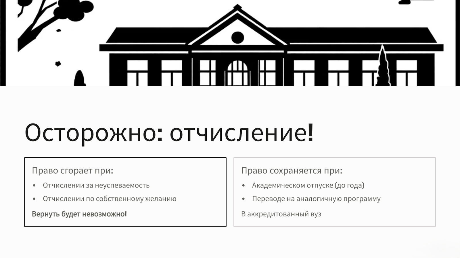 Это ключевой момент: право на отсрочку сохраняется только при переходе на следующую ступень образования без перерыва. Если вы отучились на бакалавриате, получили диплом и взяли «академический отпуск» на несколько лет, то при поступлении в магистратуру право на отсрочку вы, скорее всего, утратите.