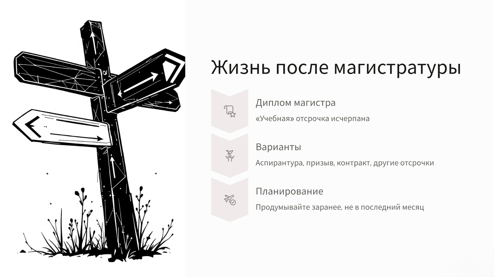 После защиты магистерской диссертации и получения диплома право на отсрочку по учебе заканчивается. Далее у вас есть несколько вариантов: