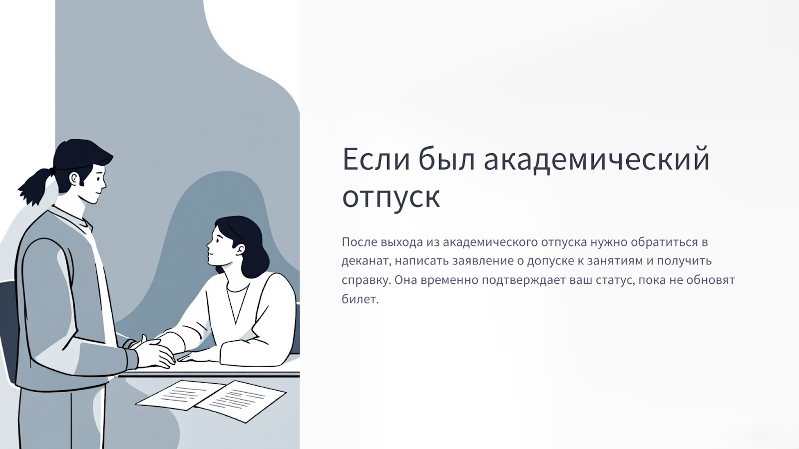 Эта ситуация — особый случай. Процедура автоматического продления здесь не сработает, так как вы были исключены из приказа о переводе. После издания приказа о вашем восстановлении вам необходимо лично обратиться в учебный отдел или деканат. Скорее всего, вам не станут продлевать старый билет, а выдадут совершенно новый, с обновлёнными данными. Основанием для его получения будет приказ о восстановлении, поэтому заранее уточните в деканате его номер и дату. Старый билет, даже если на нём остался срок действия, следует сдать, так как он будет считаться недействительным.